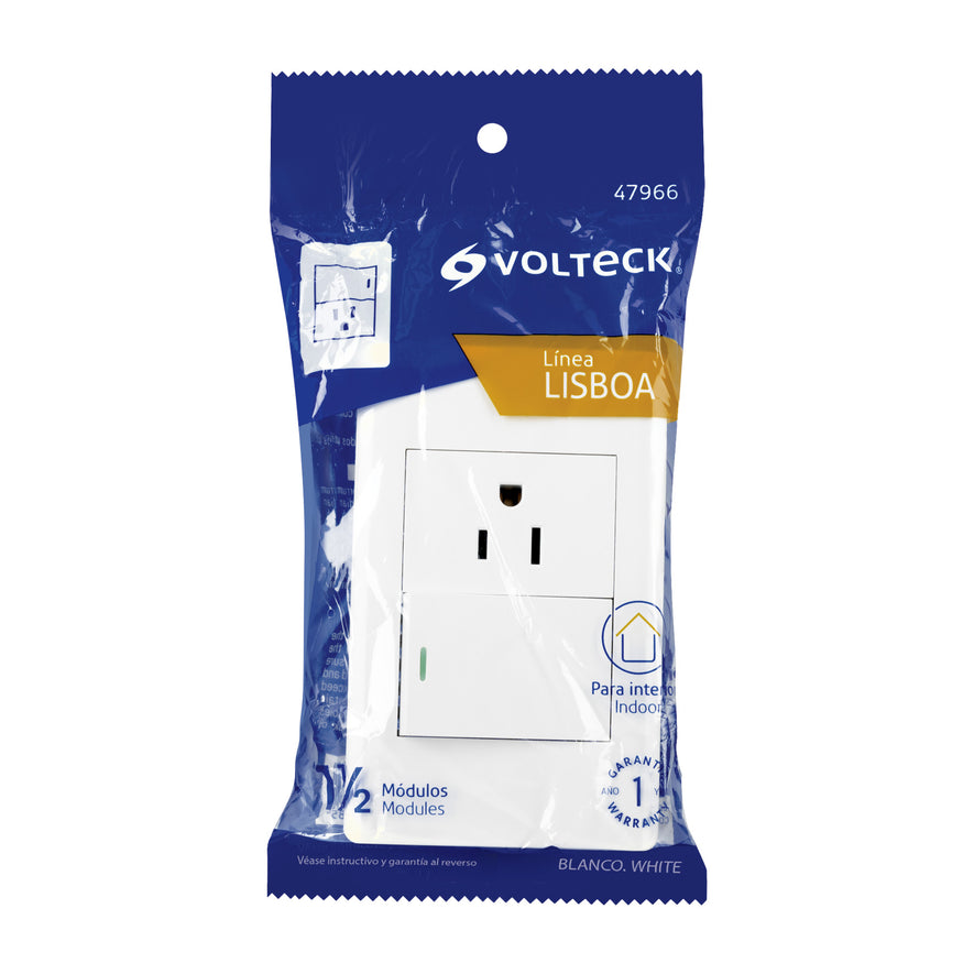 Placa armada blanca interruptor y contacto 1.5 mód, Lisboa Caja con 3, 47966