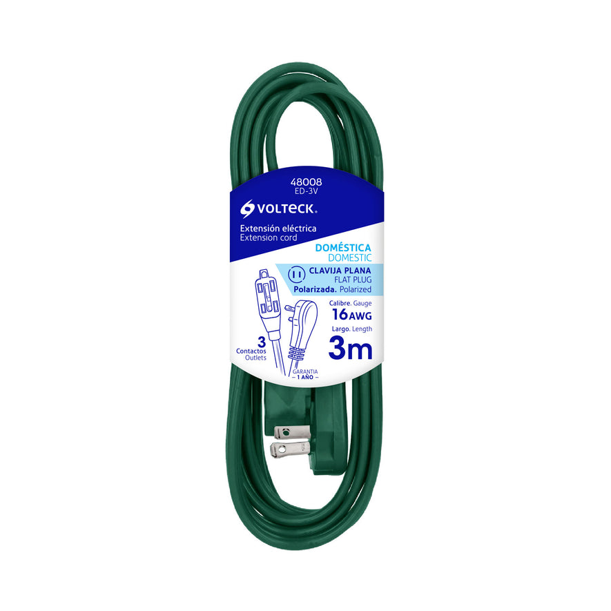 Extensión eléctrica doméstica 3 m clavija plana, verde Caja con 6, 48008Extensión eléctrica doméstica 3 m clavija plana, verde Caja con 6, 48008Extensión eléctrica doméstica 3 m clavija plana, verde Caja con 6, 48008
