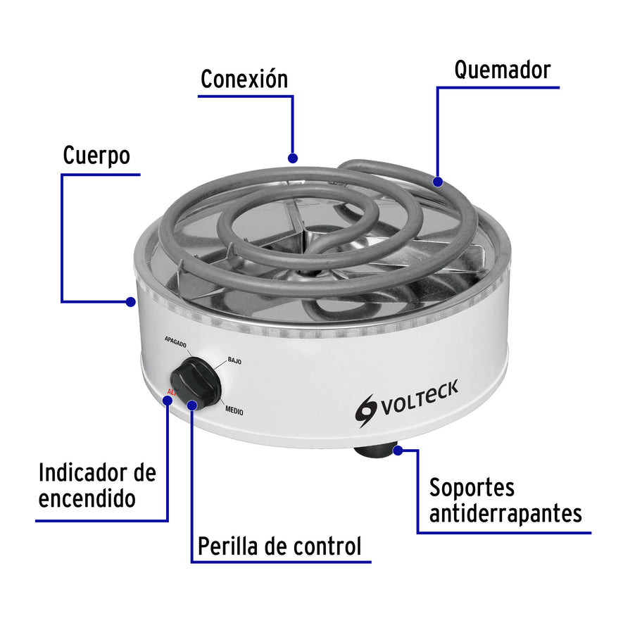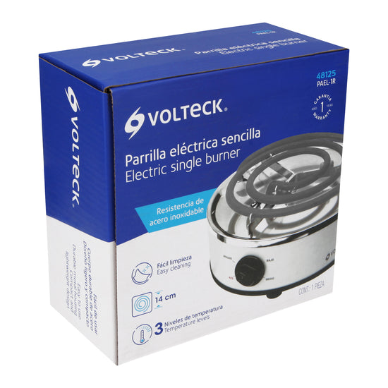 Parrilla eléctrica red. 1 quemador espiral, blanca, VOLTECK, 48125