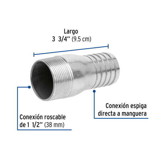 Niple de acero galvanizado 1-1/2' tipo botella, Foset Caja con 4, 48179