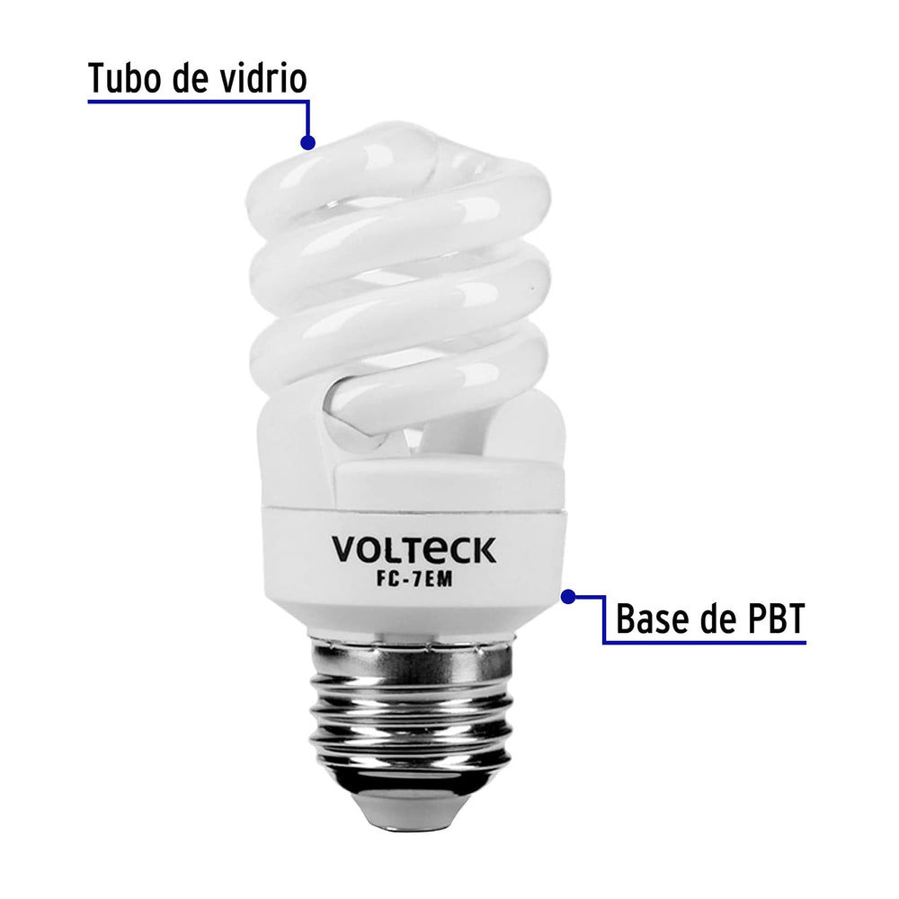 Lámpara espiral mini T2 7 W luz cálida en blíster, Volteck Caja con 4, 48203