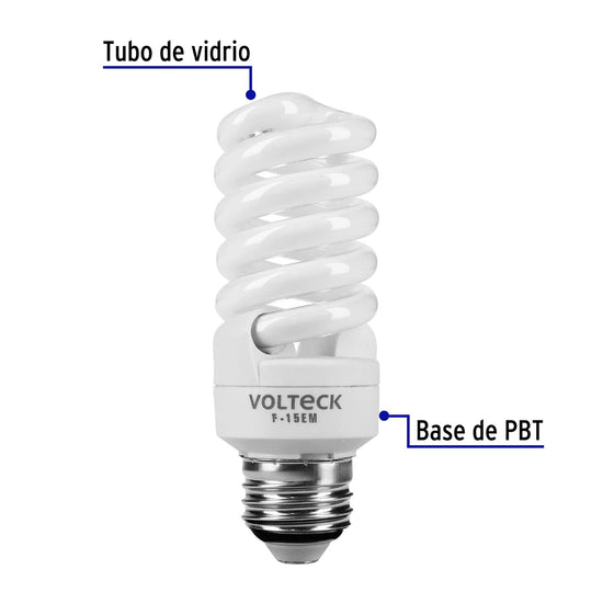 Lámpara espiral mini T2 15 W luz de día en blíster, Volteck Caja con 8, 48204