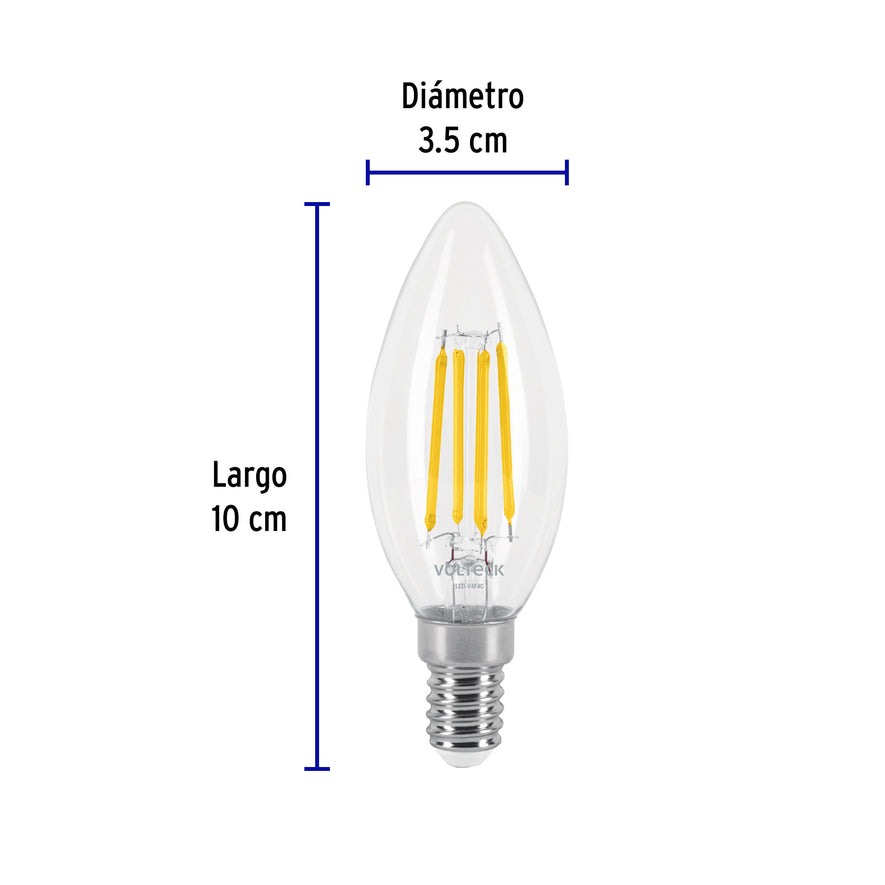 Lámpara LED tipo vela 4 W con filamento base E14 luz cálida Caja con 4, 48254