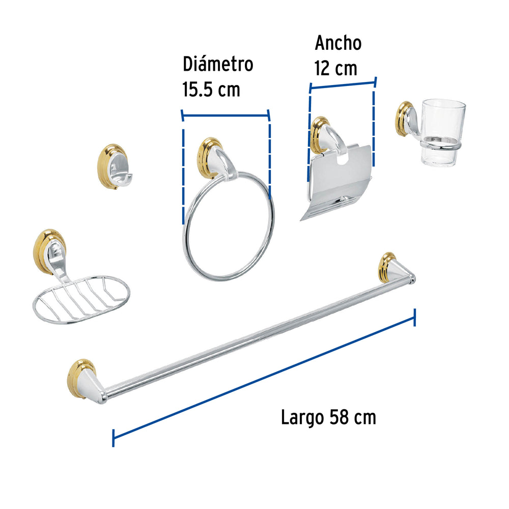 Juego de 6 acc. p/baño cromo-oro chapetón ovalado, Aqua, 48344