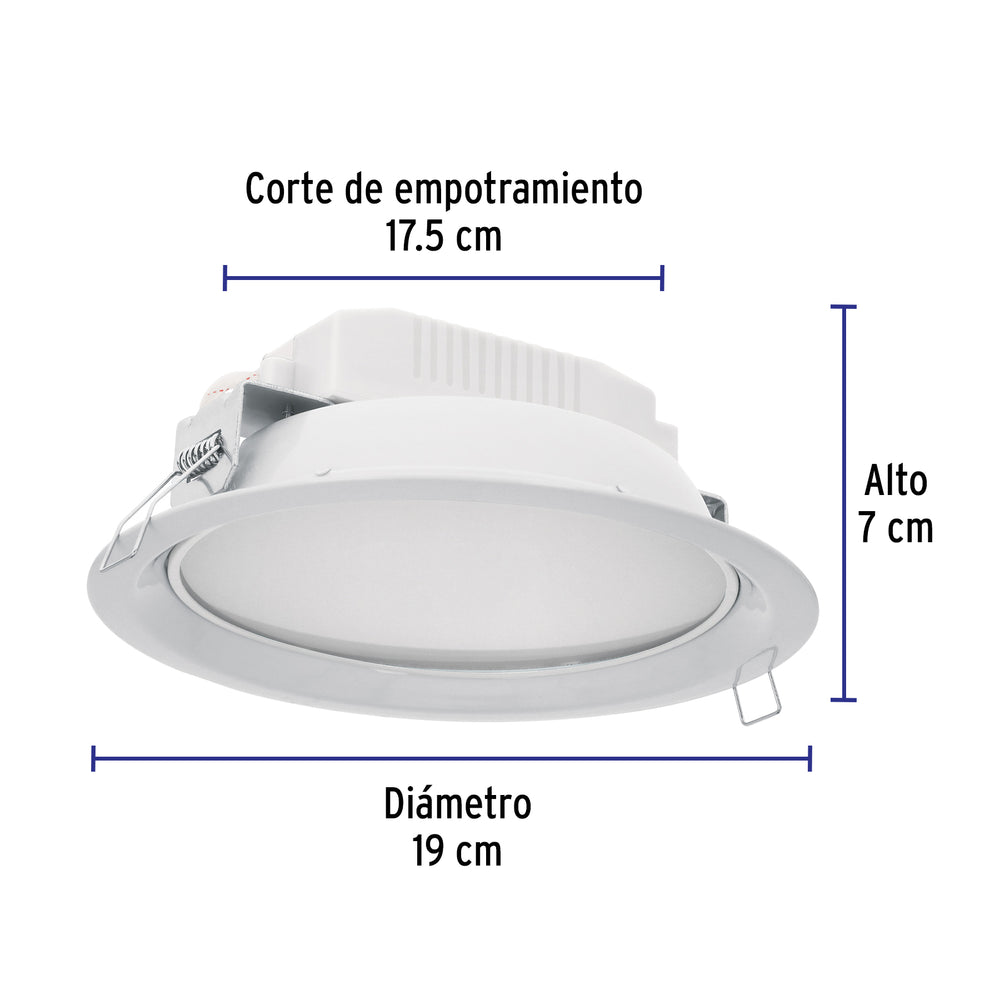 Luminario LED empotrado redondo de 12 W, luz de día, Volteck Caja con 2, 48348Luminario LED empotrado redondo de 12 W, luz de día, Volteck Caja con 2, 48348
