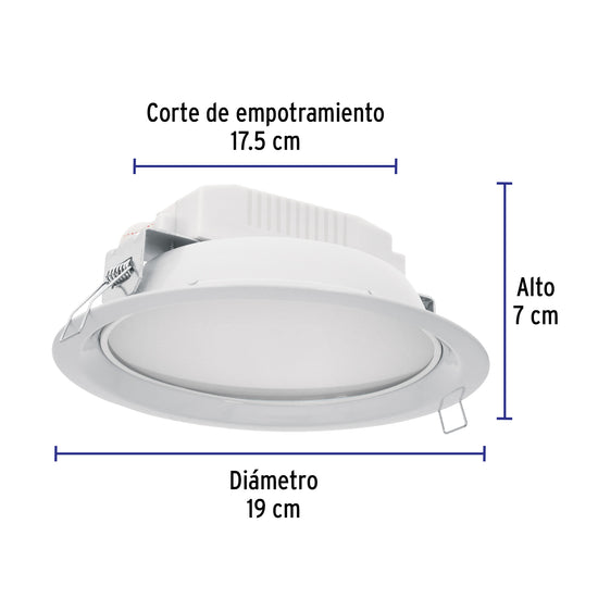 Luminario LED empotrado redondo de 12 W, luz de día, Volteck Caja con 2, 48348