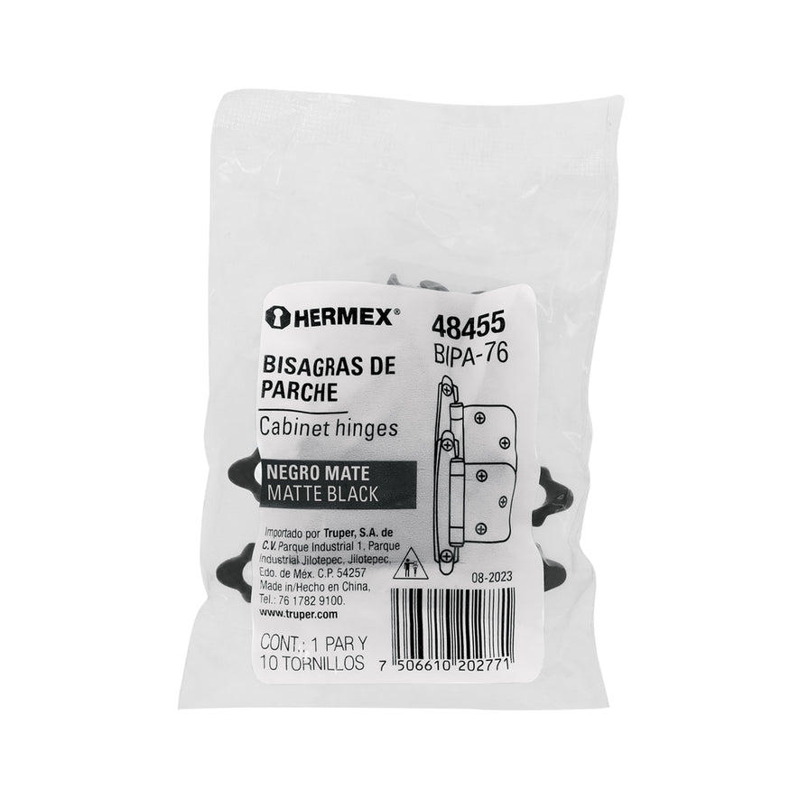 Bolsa con 2 bisagras parche de 7cm, negro, Hermex Caja con 20, 48455Bolsa con 2 bisagras parche de 7cm, negro, Hermex Caja con 20, 48455Bolsa con 2 bisagras parche de 7cm, negro, Hermex Caja con 20, 48455