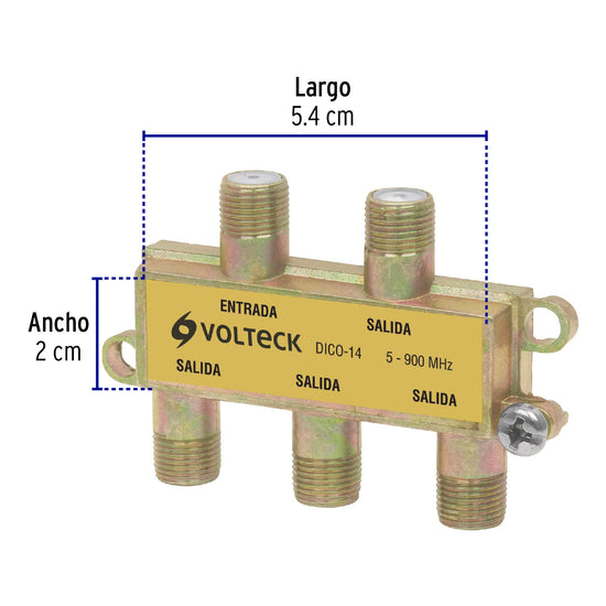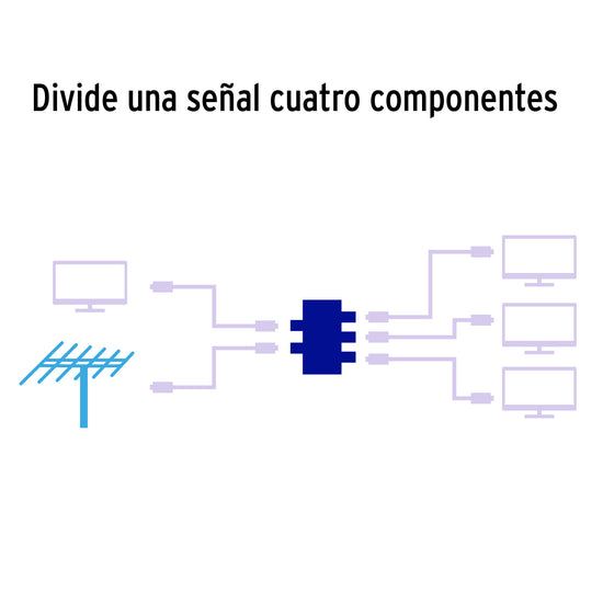 - Separa la señal proveniente de una fuente como antenas, televisión satelital o de cable y otros dispositivos coaxiales en 4 salidas
