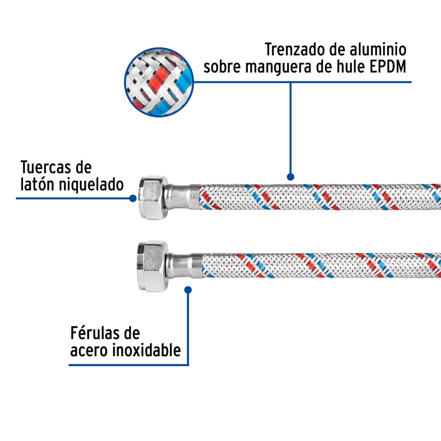 Manguera p/WC, aluminio, 1/2' x 7/8', 60 cm, Basic Caja con 12, 48544