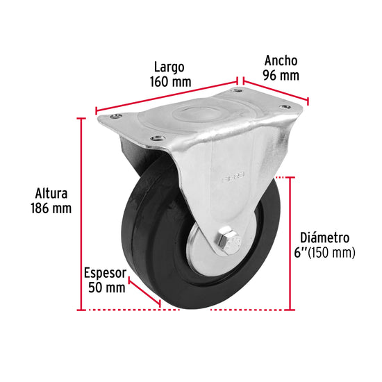Rodaja hule 6', placa fija con balero, carga 150 kg, Fiero Caja con 2, 48602Rodaja hule 6', placa fija con balero, carga 150 kg, Fiero Caja con 2, 48602Rodaja hule 6', placa fija con balero, carga 150 kg, Fiero Caja con 2, 48602