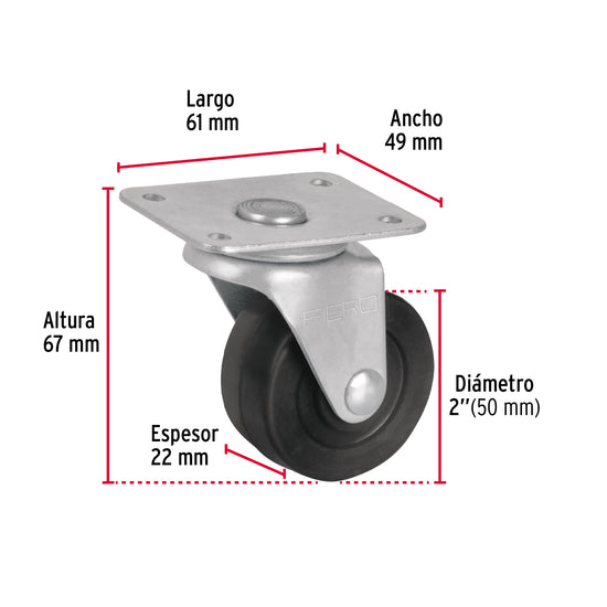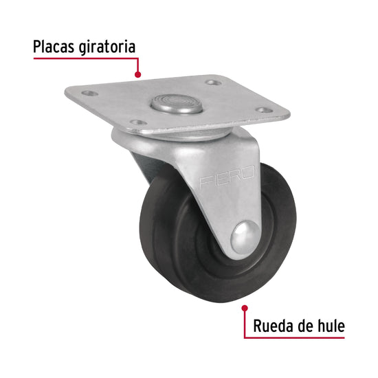 • Rueda de hule con buje y placa de acero con acabado galvanizado
