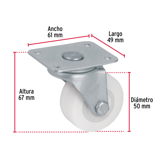 Rodaja de polietileno 2' placa giratoria, con buje, Fiero, 48624