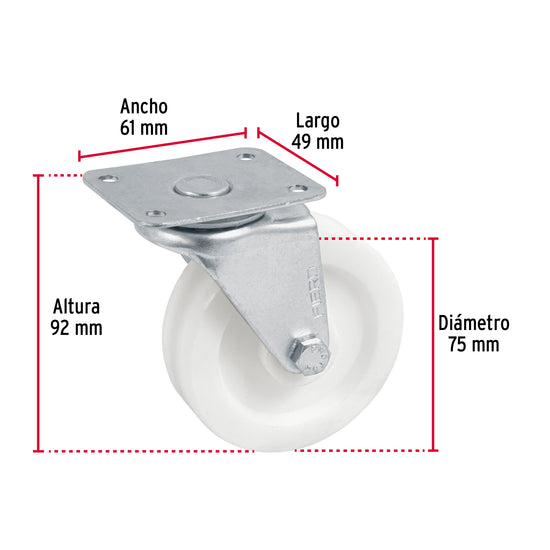 Rodaja de polietileno 3' placa giratoria, con buje, Fiero, 48628