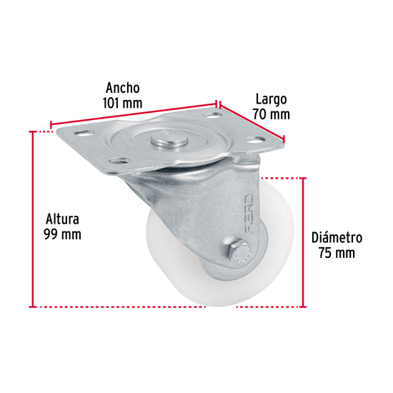 Rodaja de polietileno 3' placa giratoria, con balero, Fiero Caja con 4, 48629Rodaja de polietileno 3' placa giratoria, con balero, Fiero Caja con 4, 48629Rodaja de polietileno 3' placa giratoria, con balero, Fiero Caja con 4, 48629