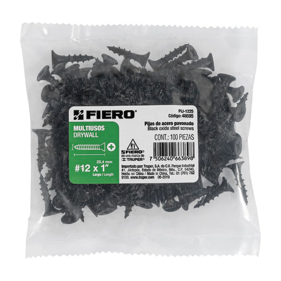 Bolsa con 100 pijas #12 x 1' multiusos, Fiero Caja con 6, 48695