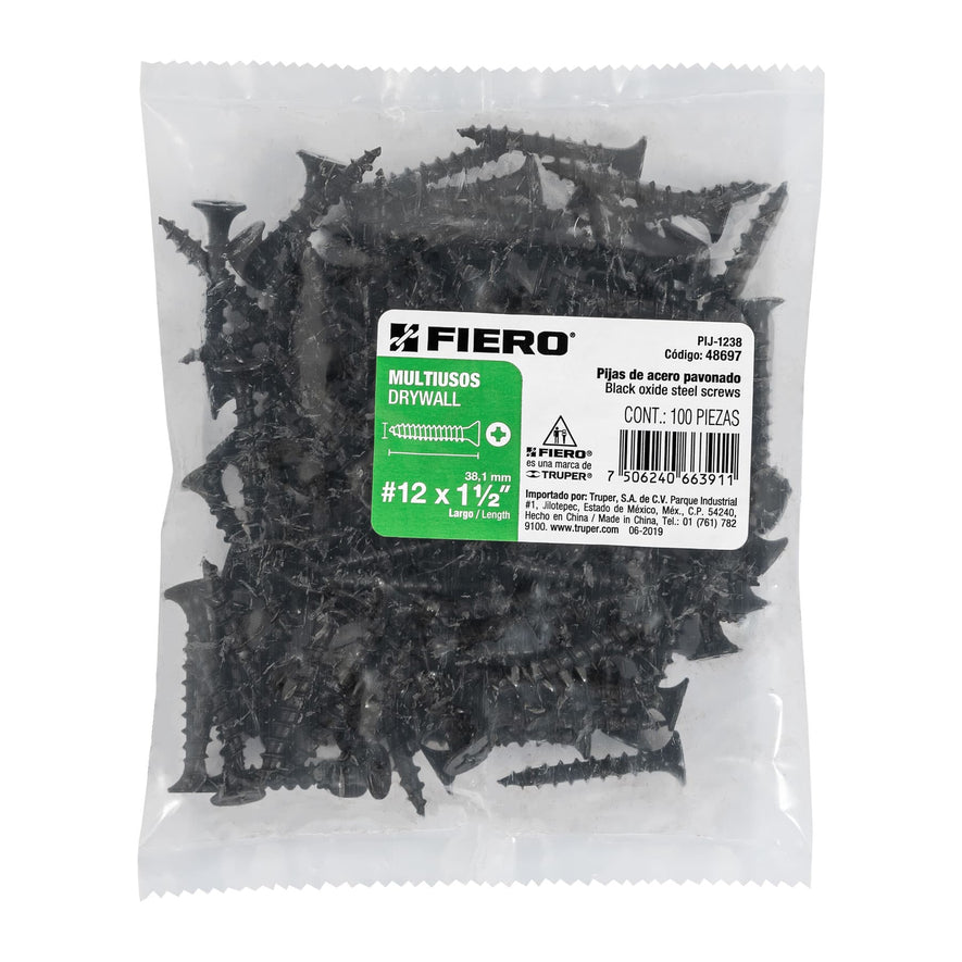 Bolsa con 100 pijas #12 x 1-1/2' multiusos, Fiero Caja con 6, 48697Bolsa con 100 pijas #12 x 1-1/2' multiusos, Fiero Caja con 6, 48697Bolsa con 100 pijas #12 x 1-1/2' multiusos, Fiero Caja con 6, 48697