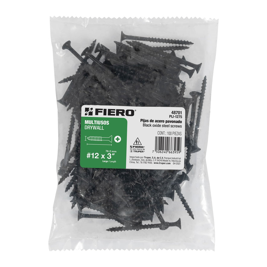 Bolsa con 100 pijas #12 x 3' multiusos, Fiero Caja con 6, 48701