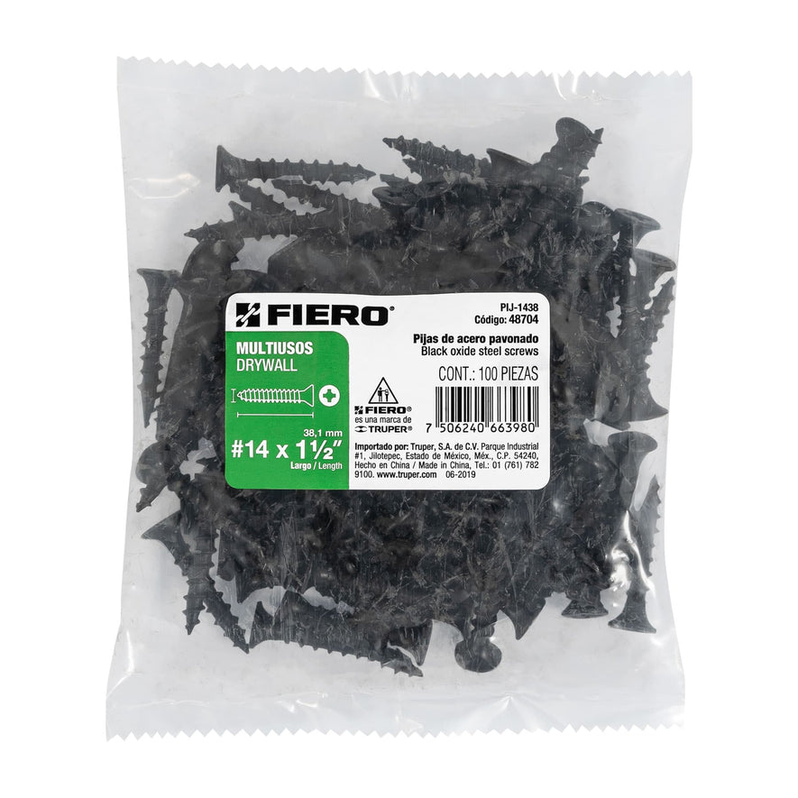 Bolsa con 100 pijas #14 x 1-1/2' multiusos, Fiero Caja con 6, 48704Bolsa con 100 pijas #14 x 1-1/2' multiusos, Fiero Caja con 6, 48704Bolsa con 100 pijas #14 x 1-1/2' multiusos, Fiero Caja con 6, 48704