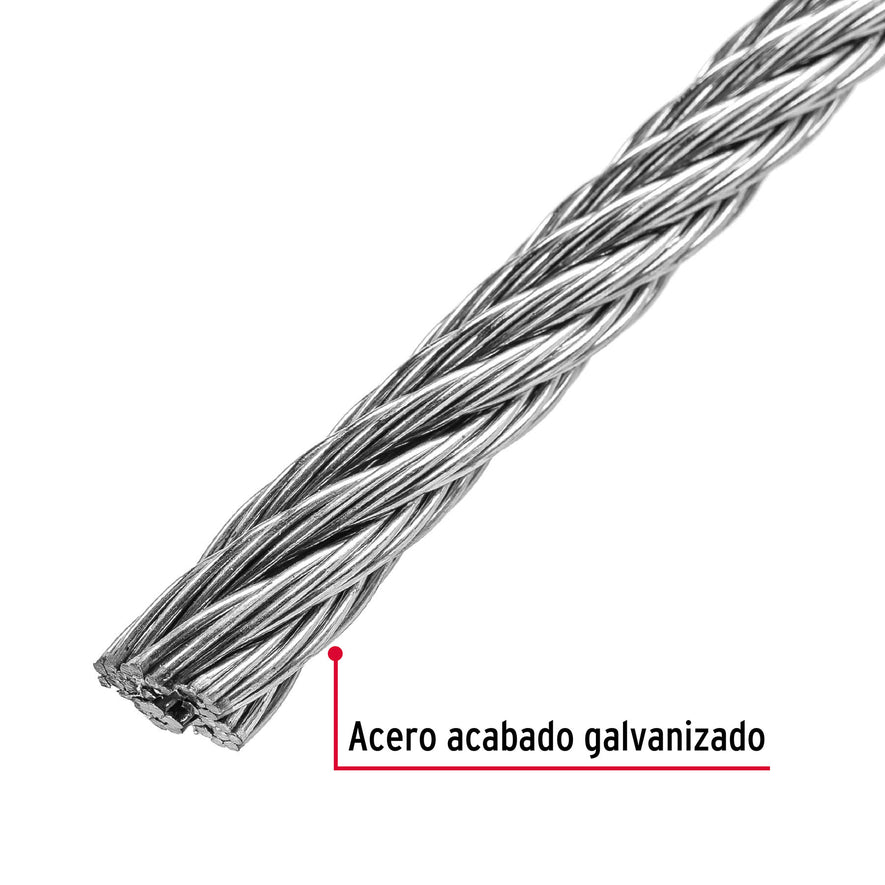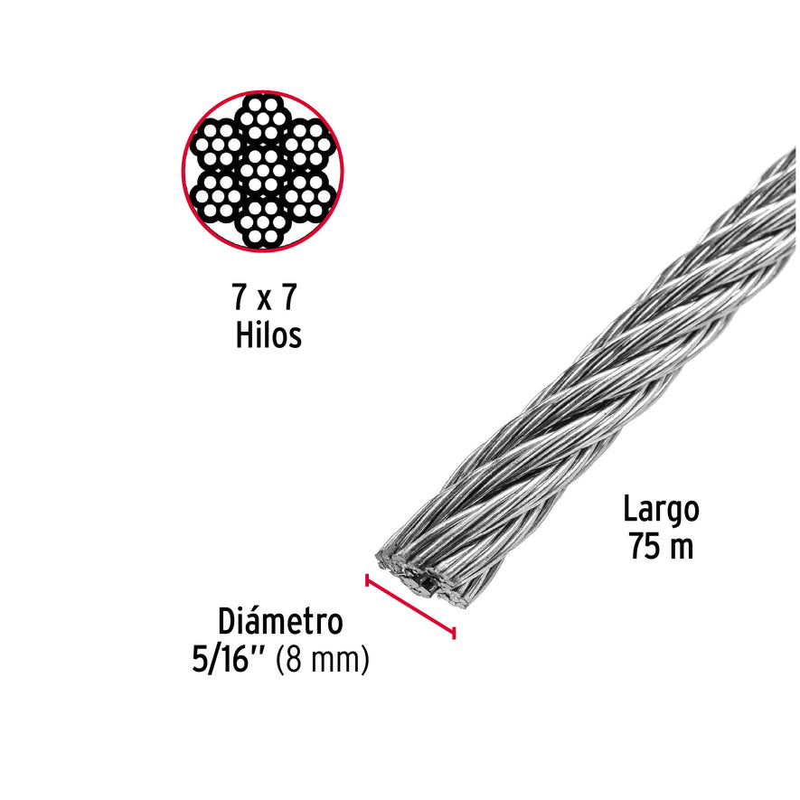 Metro de cable rígido 5/16' de acero 7x7 hilos, 75 m, Fiero Caja con 75, 48813