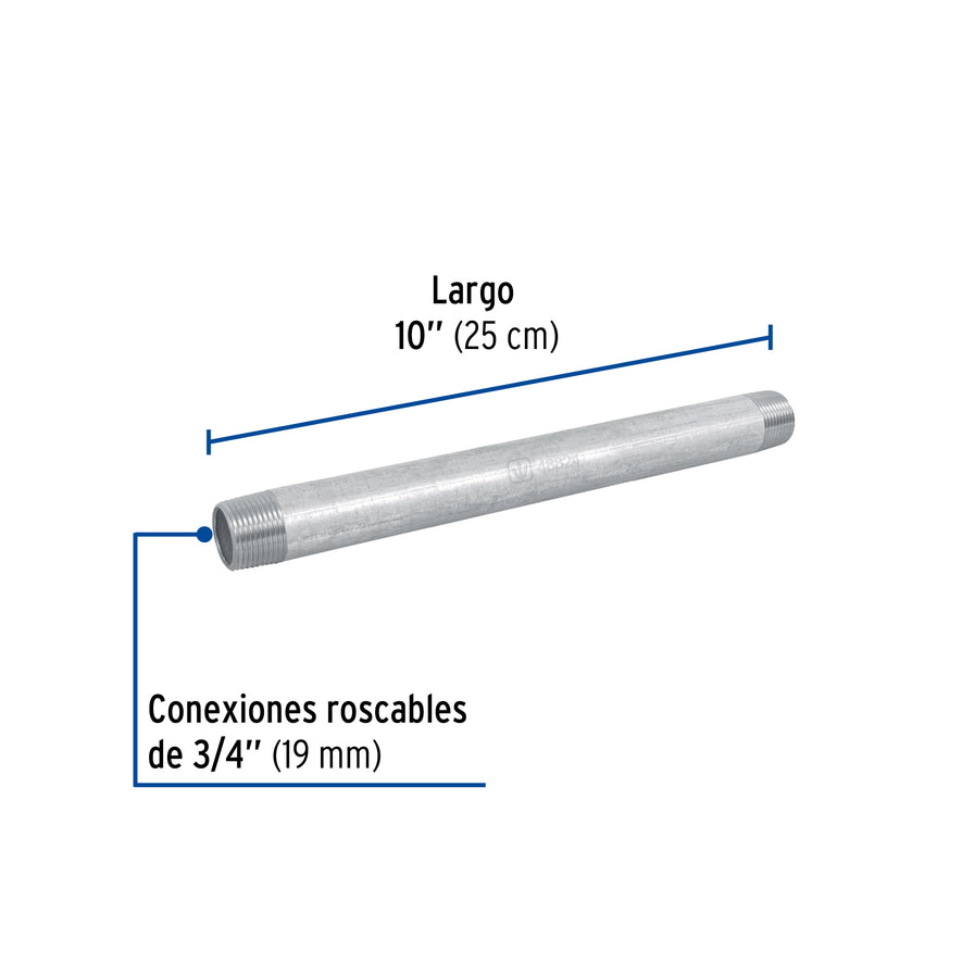 Niple de acero galvanizado 3/4 x 10', Foset Caja con 4, 48824