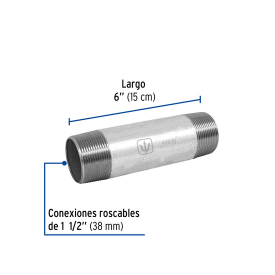 Niple de acero galvanizado 1-1/2 x 6', Foset Caja con 4, 48838