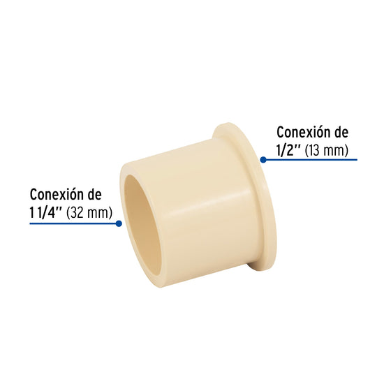 Reducción bushing CPVC 1-1/4' x 1/2', Foset Caja con 4, 48938