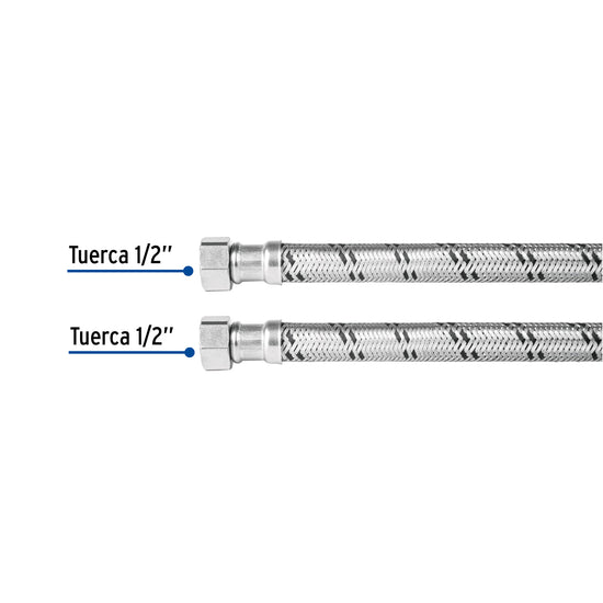 Manguera para boiler, acero inox, 1/2'x1/2', 60 cm, Foset Caja con 6, 48965