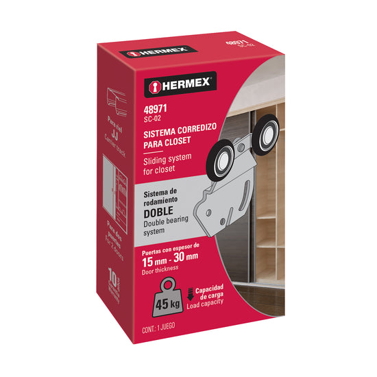 Para clóset de 2 puertas de 45 kg c/u con espesor 15 a 30 mm