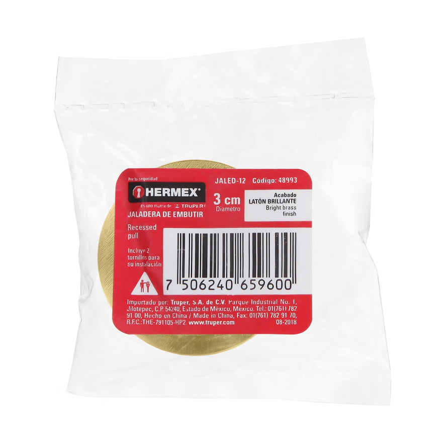 Jaladera de embutir ovalada acabado latón brillante, Hermex Caja con 10, 48992