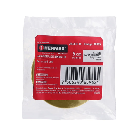 Jaladera de embutir circular No. 4 acabado latón brillante Caja con 10, 48995