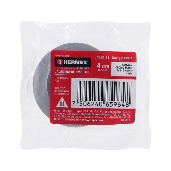 Jaladera de embutir circular No. 3 acabado cromo mate Caja con 10, 48998