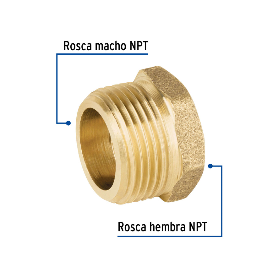Reducción bushing de latón, 3/4' x 1/2', Foset Caja con 5, 49062Reducción bushing de latón, 3/4' x 1/2', Foset Caja con 5, 49062