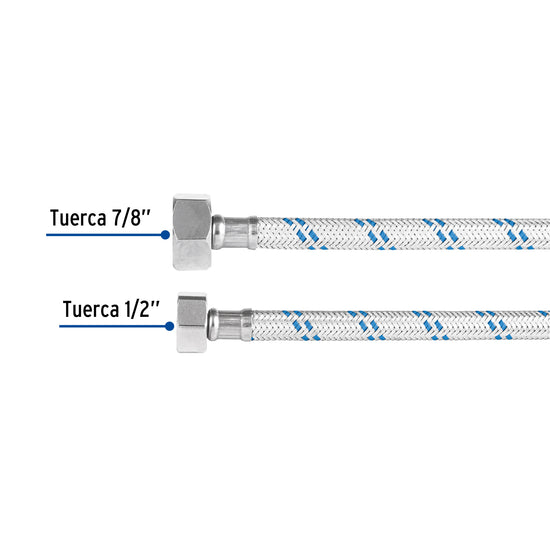 Manguera p/WC, aluminio, 1/2' x 7/8', 35 cm, Foset Caja con 6, 49125Manguera p/WC, aluminio, 1/2' x 7/8', 35 cm, Foset Caja con 6, 49125