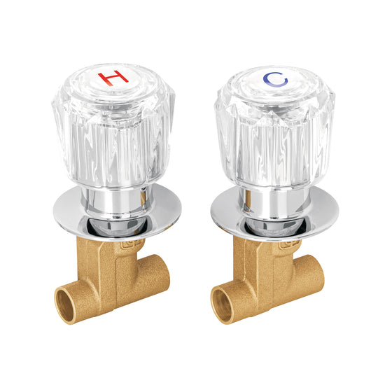 Juego llaves empotrar soldables, maneral acrílico, Foset, 49250