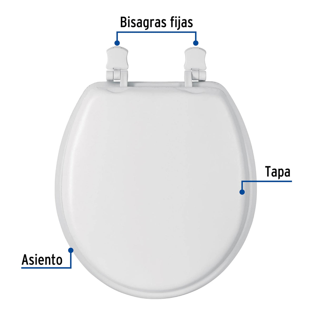 Asiento redondo acojinado para WC, cerrado, blanco, FOSET, 49367