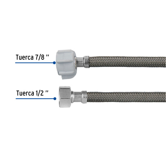 Manguera p/WC, vinilo gris, 1/2'x7/8', 50cm, plástico/latón Caja con 6, 49523Manguera p/WC, vinilo gris, 1/2'x7/8', 50cm, plástico/latón Caja con 6, 49523