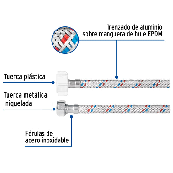 Manguera p/WC, aluminio, 1/2'x7/8', 60cm, plást/metal, Basic Caja con 12, 49594