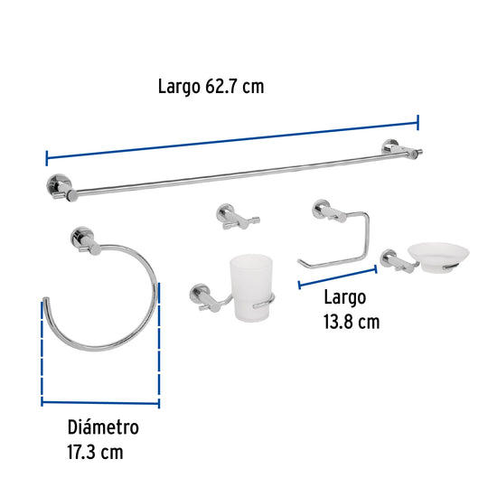 Juego de 6 accesorios para baño acabado cromo, Foset Element, 49681