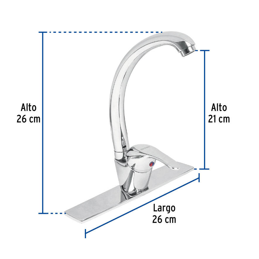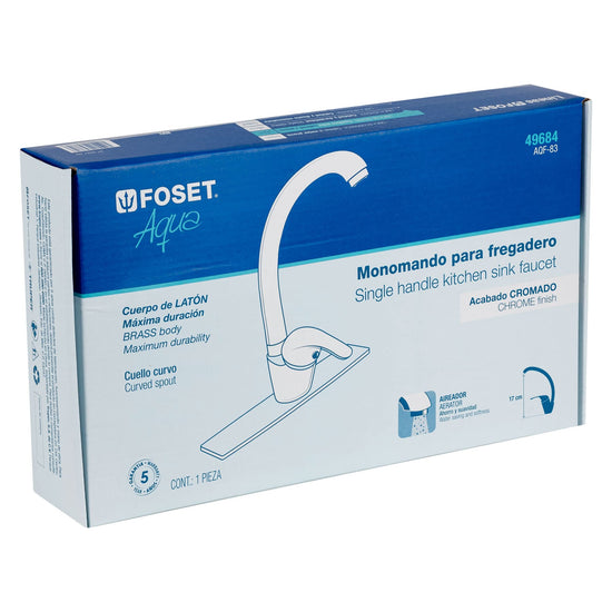 Monomando fregadero cromo, cuello curvo, AQUA, 49684