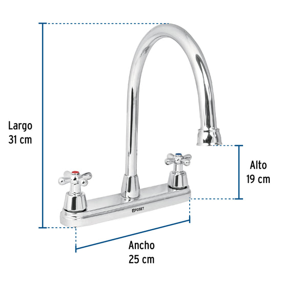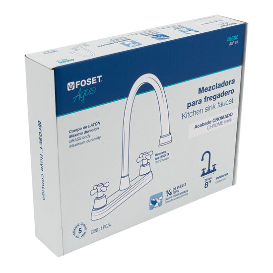 Mezcladora fregadero 8' cromo, cuello largo, cruceta, AQUA, 49686