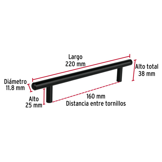 Jaladera de acero 160 mm, estilo 'Cilindro', negro, Hermex Caja con 12, 49733