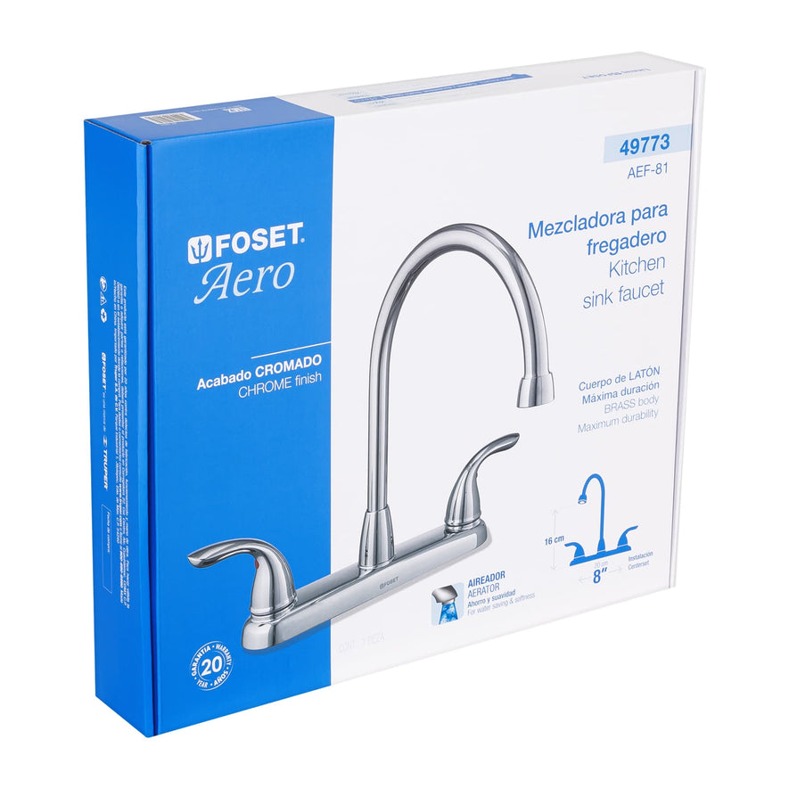 Mezcladora 8' cuello alto para fregadero, Foset Aero, 49773Mezcladora 8' cuello alto para fregadero, Foset Aero, 49773Mezcladora 8' cuello alto para fregadero, Foset Aero, 49773