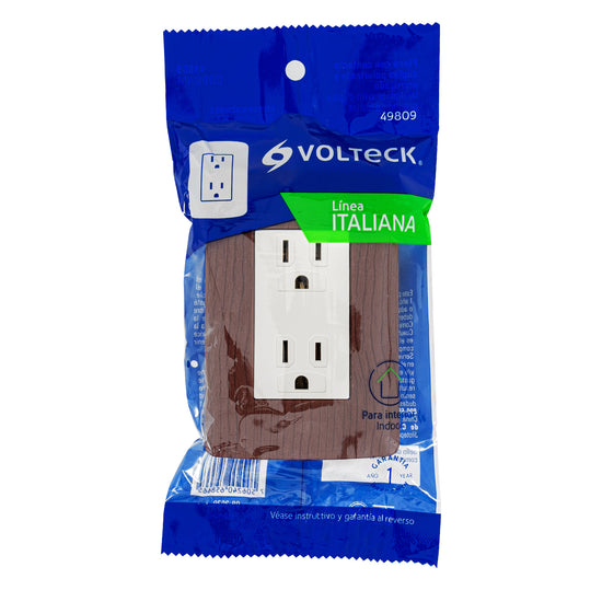 Contacto dúplex aterrizado, color madera, línea Italiana Caja con 6, 49809
