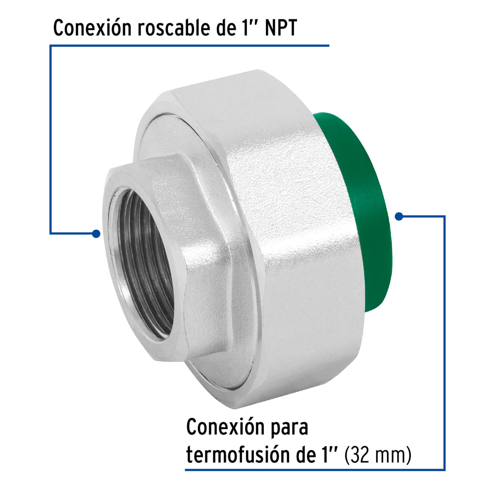 Tuerca unión PPR, mixta inserto metálico, 1', Foset Caja con 10, 49818