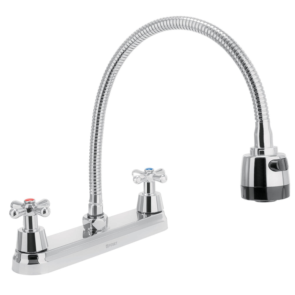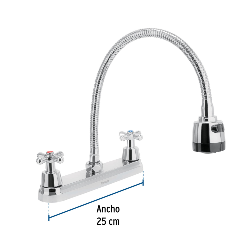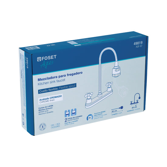 Mezcladora fregadero 8' cromo, cuello flexible, cruceta,AQUA, 49819