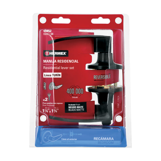 Cerradura manija 'Turín' p/recámara, negro, cilindro latón Caja con 3, 49852