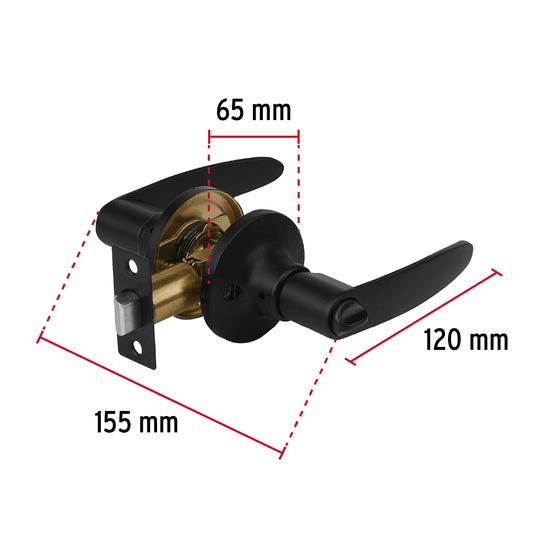 Cerradura de manija 'Turín' p/baño, negro, cilindro latón Caja con 3, 49853