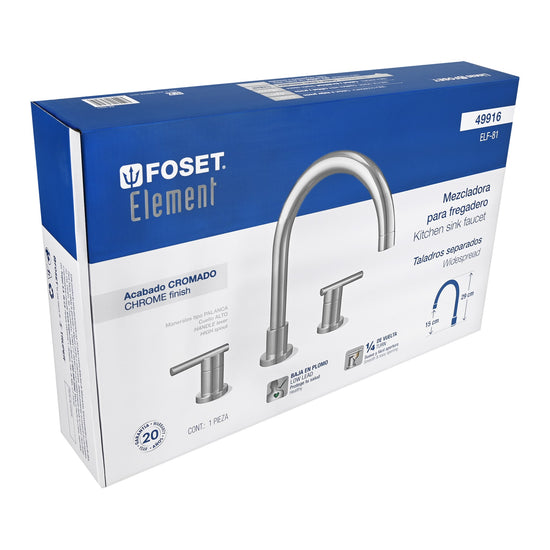 Mezcladora cromo cuello alto para fregadero, Foset Element, 49916Mezcladora cromo cuello alto para fregadero, Foset Element, 49916Mezcladora cromo cuello alto para fregadero, Foset Element, 49916