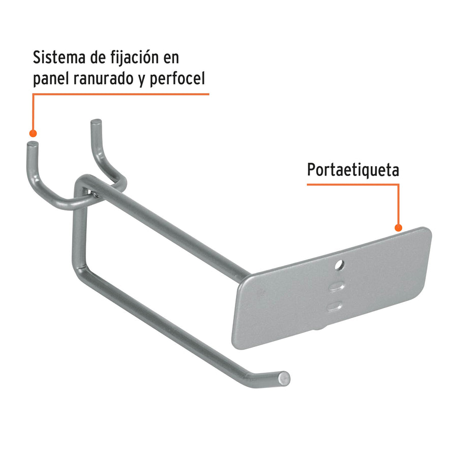 Gancho recto 4' con portaetiqueta para perfocel y ranurado Caja con 24, 50150Gancho recto 4' con portaetiqueta para perfocel y ranurado Caja con 24, 50150