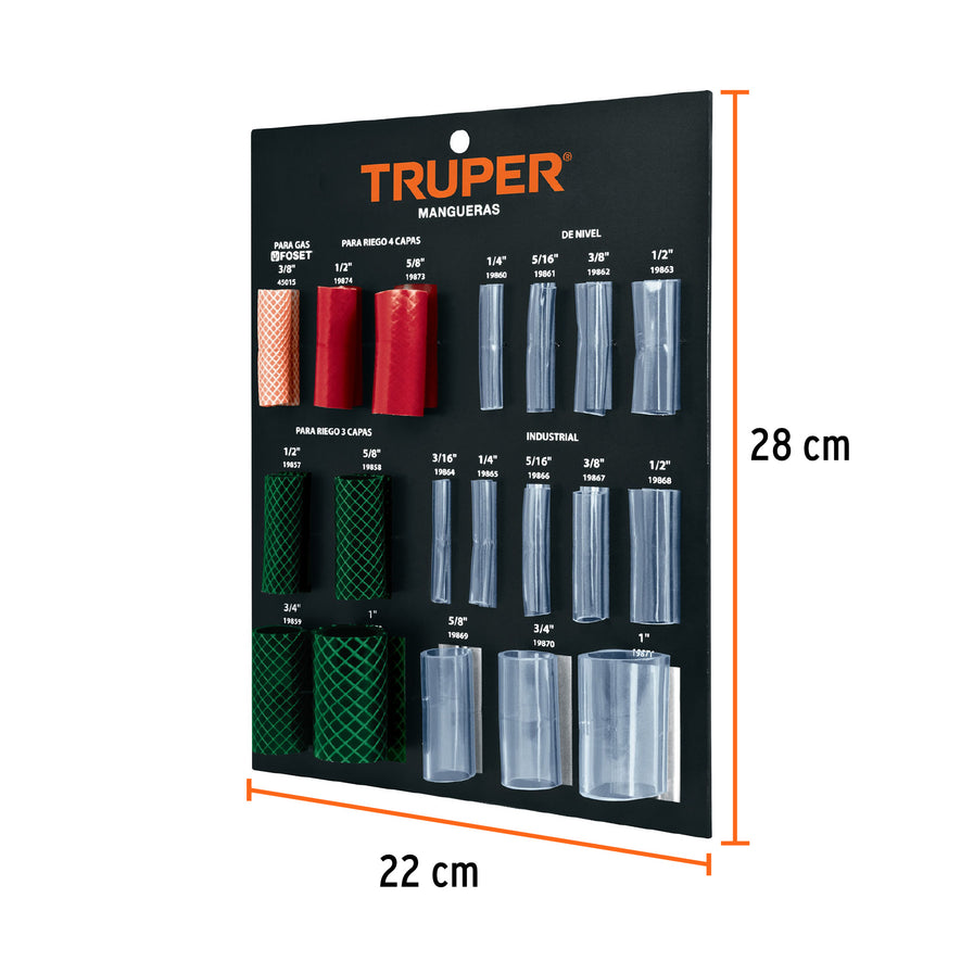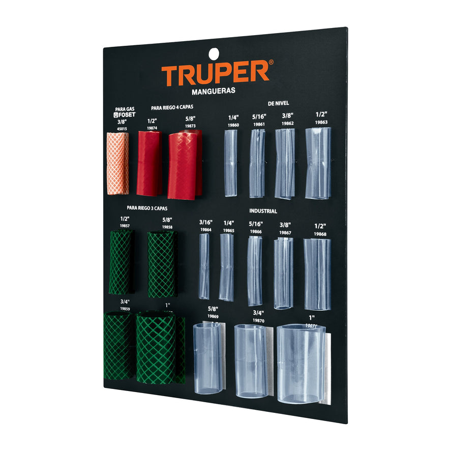Exhibidor Truper de mangueras para jardín, nivel y gas, 55561Exhibidor Truper de mangueras para jardín, nivel y gas, 55561